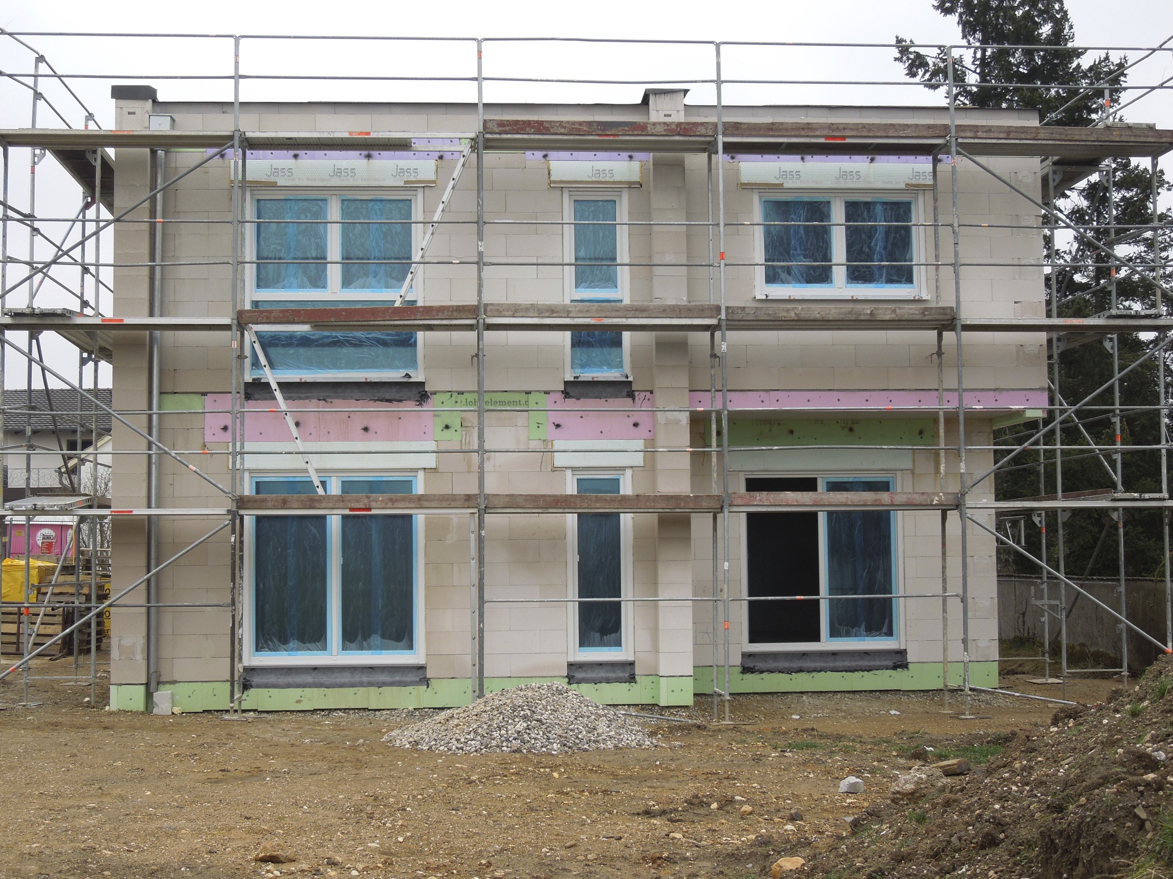 Gestern hat die Firma TMP termingerecht mit der Montage der Fenster für unser Haus begonnen. Dank dem Einsatz dreier Monteure war bereits gegen Mittag das Untergeschoss weitestgehend mit den montierten Fensterelementen versorgt. Die Elektroanschlüsse und Motoren für die elektrischen Rollläden im Erdgeschoss waren ebenfalls schon an Ihrem Platz. Heute haben sich die Männer von TMP dann noch das Obergeschoss vorgenommen. Morgen sollen dann alle Fenster und unsere vorläufige Bautür fertig montiert sein.